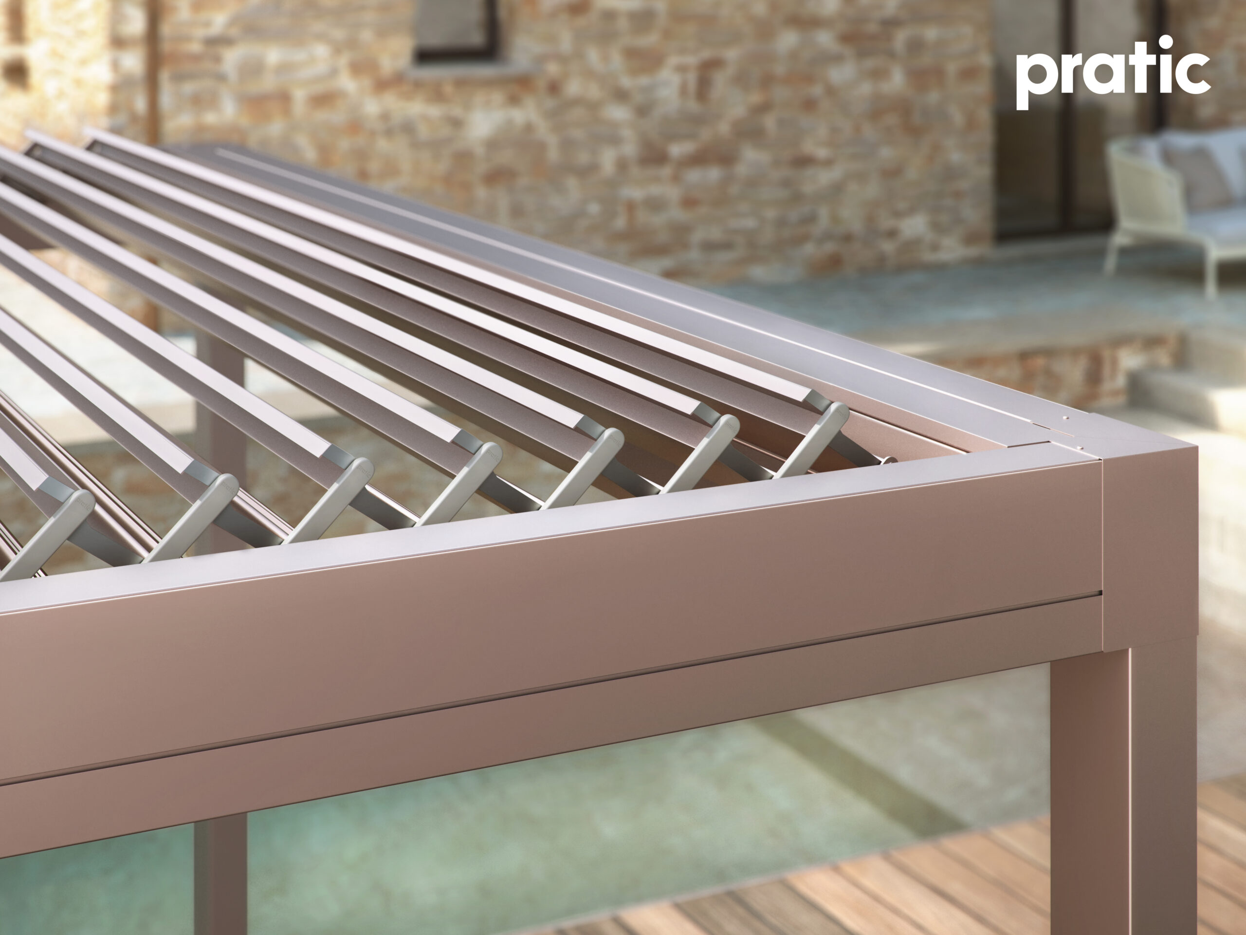 Su estética minimalista y sus proporciones equilibradas la convierten en una solución ideal para integrar en terrazas, jardines o espacios de arquitectura moderna. Además, su estructura modular permite ampliar la superficie cubierta combinando varios módulos, adaptándose a diferentes configuraciones de proyecto.